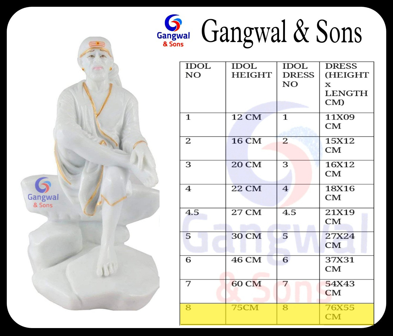 SHIRDI SAI BABA IDOL DRESS WITH PAGDI 6 DRESS OF SIZE 8 (MIX COLOURS , MIX DISIGNED )